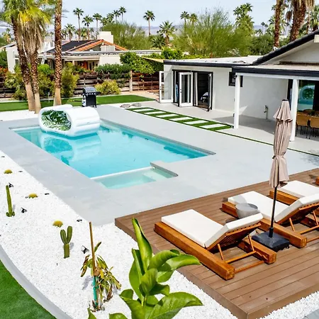 Esta villa se encuentra a una distancia de 4,1 km del Jardín Botánico Moorten y Cactarium. Los huéspedes también pueden visitar el Centro de Convenciones de Palm Springs, situado a 15 minutos en coche.