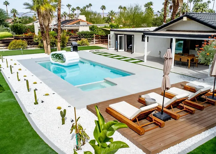 Situada a una distancia de 4 km del Wet'n'Wild Palm Springs, la villa Balinese Oasis By Rather Be Properties Palm Springs|Balinese Oasis By Rather Be Properties Palm Springs ofrece acceso a una piscina. Con un aparcamiento privado gratuito, la casa de vacaciones se encuentra a unos 10 minutos en coche del Museo de arte de Palm Springs.